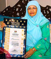 Habibah Zikri receives the honorary title of National Craftsman Award 2007. The award was presented by the Prime Minister, Datuk Seri Abdullah Ahmad Badawi during the recent National Craft Day organised by the Malaysian Handicraft Development Corporation under the Culture, Arts and Heritage Ministry. She received the title for her contribution in preserving the art of